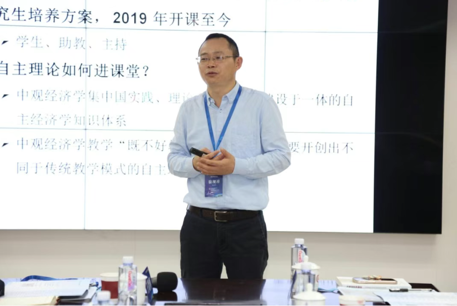 上海交通大学马克思主义学院贾微晓副教授以“中观经济学教学课程设计探讨”为题进行主题研讨。贾微晓副教授介绍了中观经济学课程在上海交通大学的授课情况,强调了案例与理论相结合的重要性,分享了将马克思主义政治经济学理论和中央政策文件解读纳入教学大纲、读书会和实地调研等多种课程探索,最后提出未来推进中观经济学课程及交流互动的几点措施。