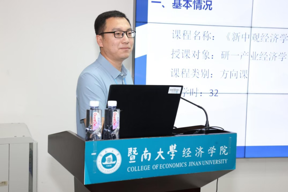 复旦大学经济学院博士生粟智豪报告了中观经济学课程在复旦大学的开设情况。粟智豪介绍了复旦大学中观经济学课程的教学大纲,指出课程强调与文献、现实和学生对话的教学设计,并分享他在中观经济学研讨班上的学习心得。