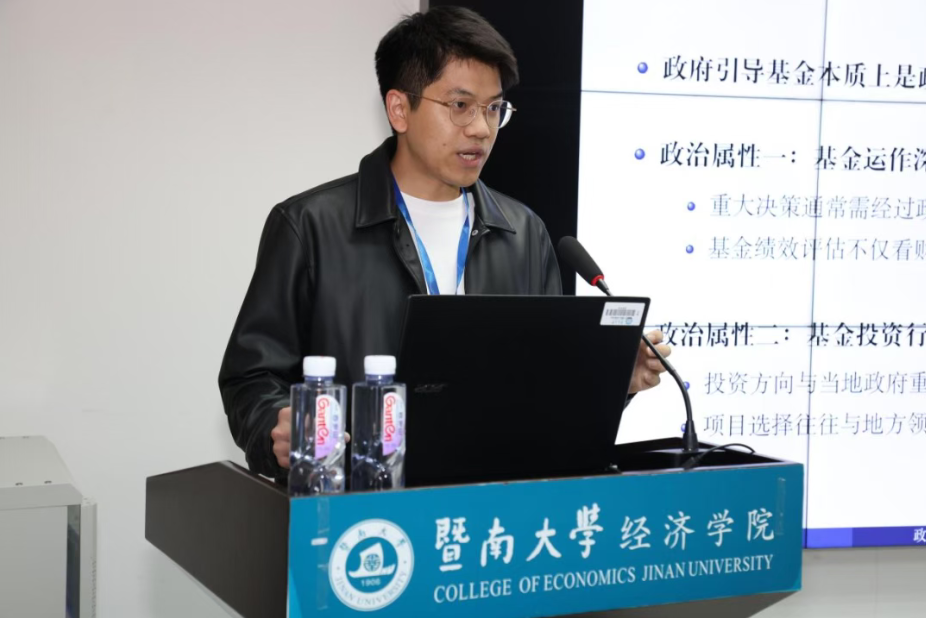 暨南大学中观经济学研究中心博士研究生陈博潮报告题目是“政府引导基金的政治周期”。文章呈现了中国各级政府通过设立政府引导基金来有为推动战略性新兴产业和未来产业发展的重要典型事实,在此基础上考察地方官员变更是否影响政府引导基金的持续性和稳定性,发现政府引导基金具有明显的政治周期效应。与会专家从基金的支配权、官员的任期阶段、基金投资主体和被投基金的异质性表现等方面进行讨论。