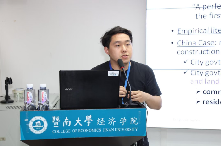 复旦大学经济学院博士生粟智豪报告论文题目是 Fiscal Motives and Urban Land Allocation: Evidence from China’s Land-Use Right Sale 。他从地方政府的土地配置动机出发,分析了商服用地配置对住宅用地价格的影响,通过进行计量分析、结构估计和反事实估计等方法探讨了土地市场价格机制对有为政府塑造的正向影响。与会专家就土地分类、政府土地配置的福利分析等角度进行讨论。