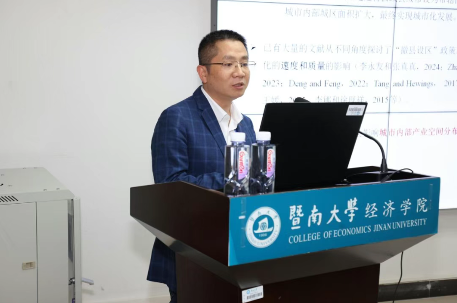 暨南大学杨本建副教授在题为“行政区划调整与城市制造业空间布局”的报告中,介绍了中国地方政府通过撤县设区推动辖区经济高质量发展的典型现象,研究发现了撤县设区政策导致的城市空间扩张使得制造业更多集中在城市中心,尤其是具有较强激励的城市。与会专家就文章贡献视角、微观企业机制、政策经济含义等角度进行讨论。