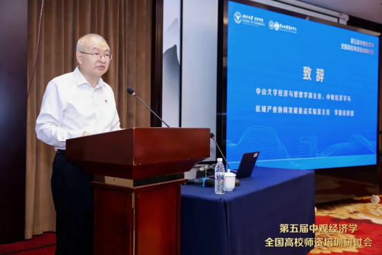 7月9日上午,研讨会正式开幕,中山大学经济与管理学部主任、中观经济学与区域产业协同发展重点实验室主任李善民教授为本次会议致辞。他高度评价了中观经济学研究团队在陈云贤教授带领下取得的卓越成就,指出该学科在理论创新、人才培养、教材体系建设和社会服务等方面均取得了突破性进展。他强调,中观经济学平台的建设发展深度契合国家新文科建设战略需求,现已成长为国内经济学领域具有重要学术影响力、并逐步形成显著国际影响力的高端学术平台,为我国经济学理论创新和学科发展作出了重要贡献。