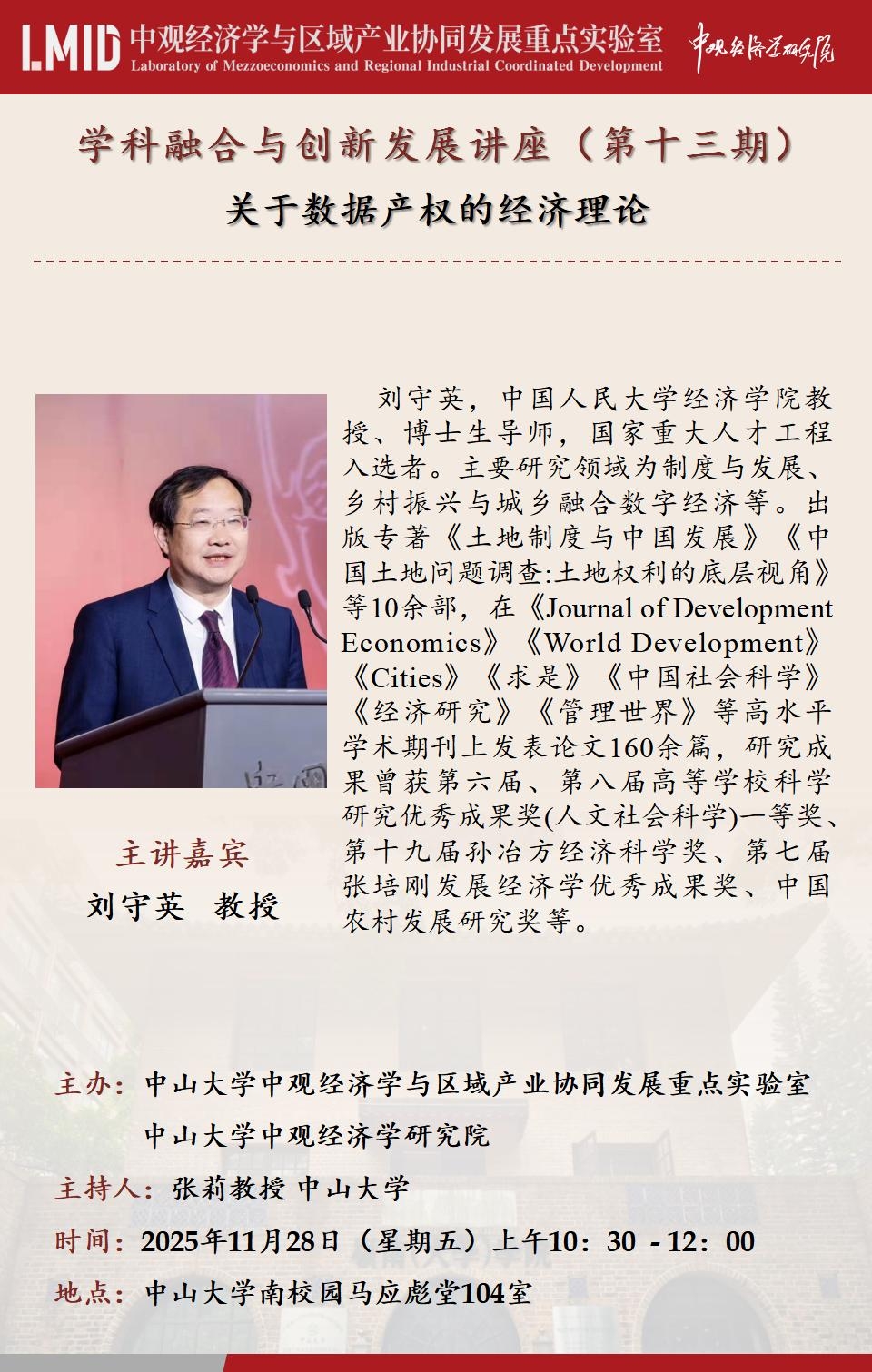 讲座预告 | 学科融合与创新发展讲座(第十三期)关于数据产权的经济理论